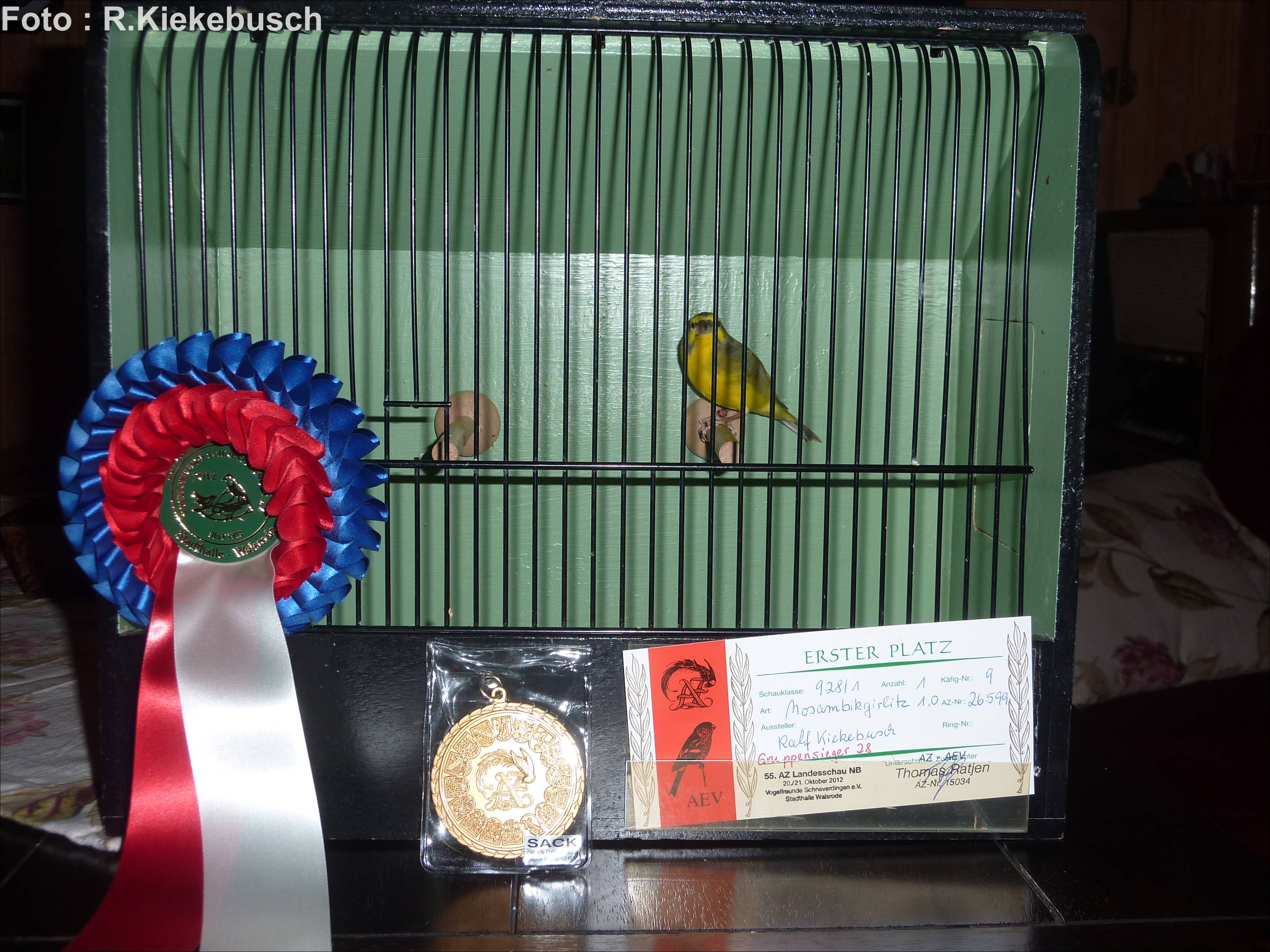 | Auszeichnung 2012: "AZ-Landesschau 2012 " Gruppensieger mit einem Mosambikgirlitz |