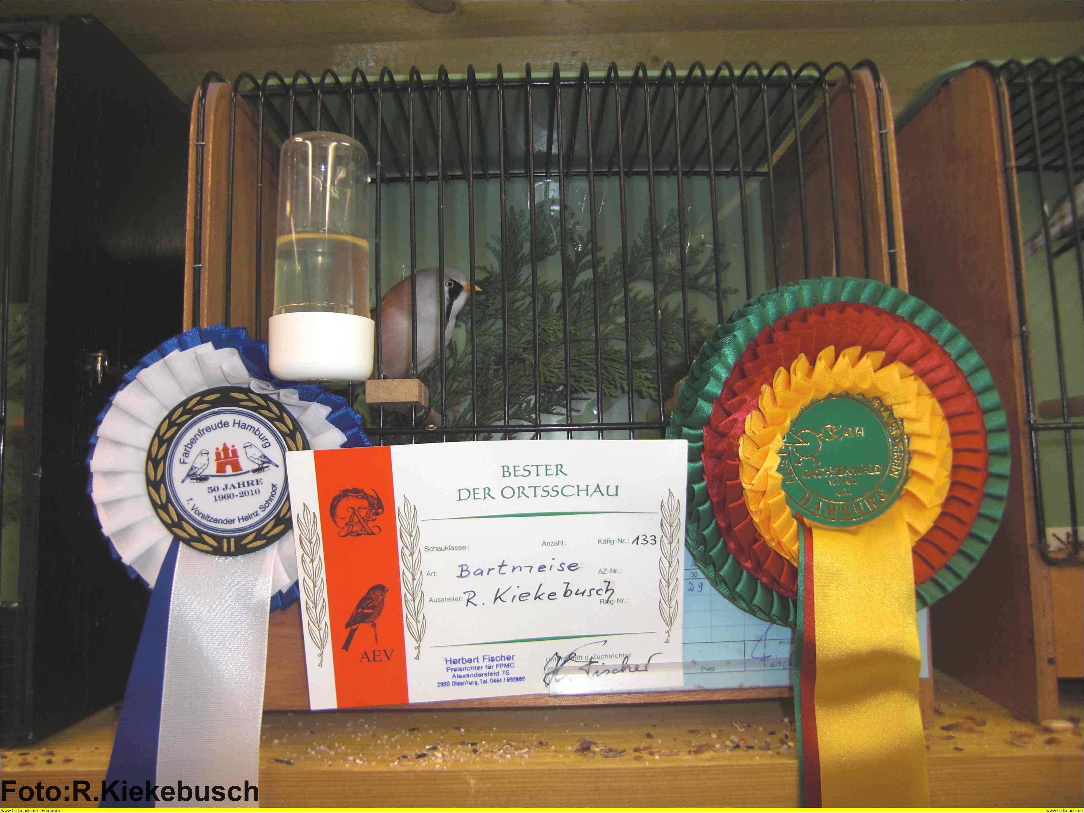 | Auszeichnung 2010: "Goldener Vogel von Osnabrück " mit einer Bartmeise (94 Punkte)Quellenangabe:Vogelfreunde Osnabrück |