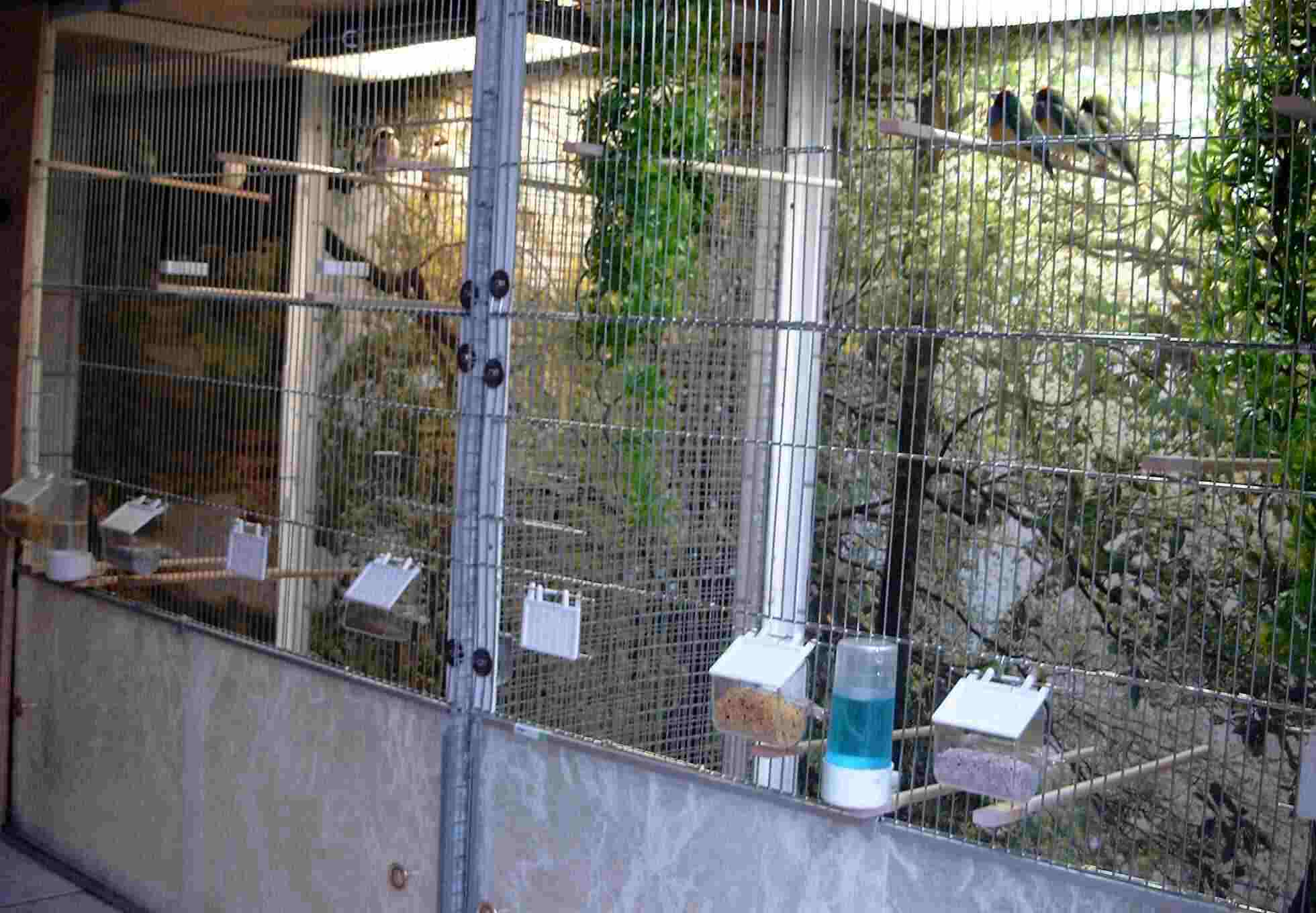 vor den zwei alten Innenvolieren das Drahtgeflecht durch Vorsatzgitter ausgewechselt.